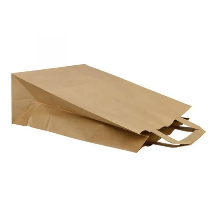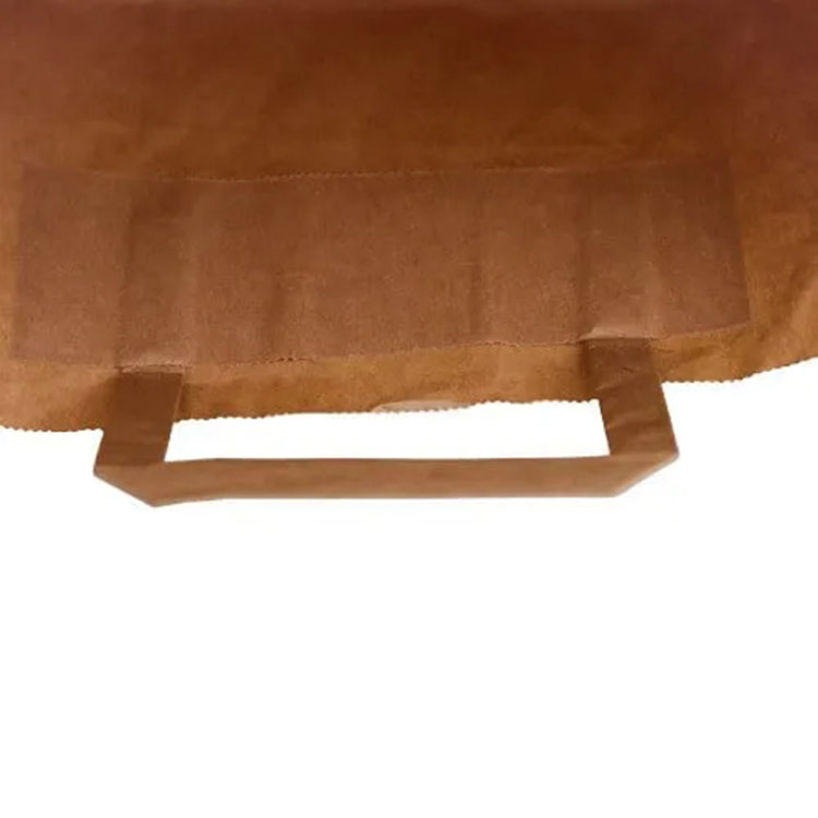 Tas kertas Kraft kanthi gagang kertas sing rata bisa digunakake ing industri katering, ing supermarket lan hadiah. Dheweke digawe saka bahan sing kuat lan tahan lama, bisa digunakake kaping pirang-pirang, komplong lan biodegradis.